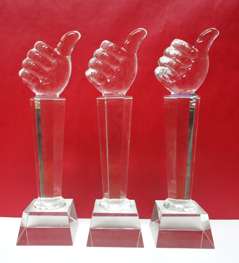 拇指水晶奖杯免费刻字,最近创意